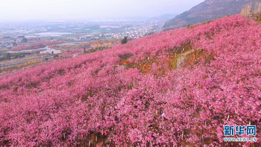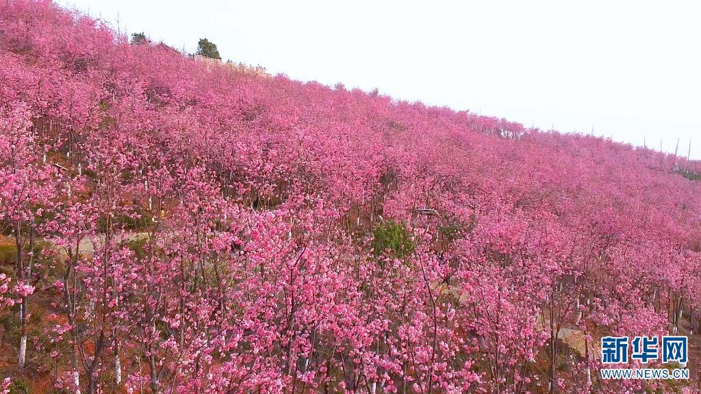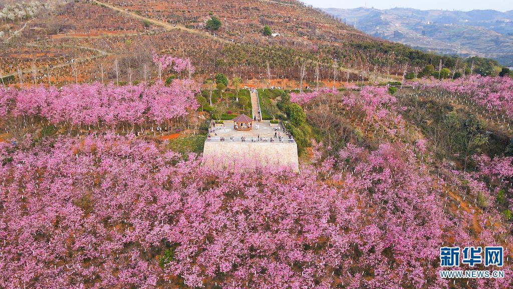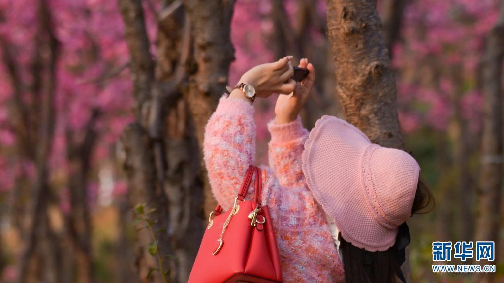 在云南省保山市东山森林公园,漫山遍野的樱花竞相绽放,给东山染上了一片粉色烟霞。走进樱花谷,一簇簇、一团团的樱花缀满枝头,美不胜收。(完)(邵维岑 郭康)