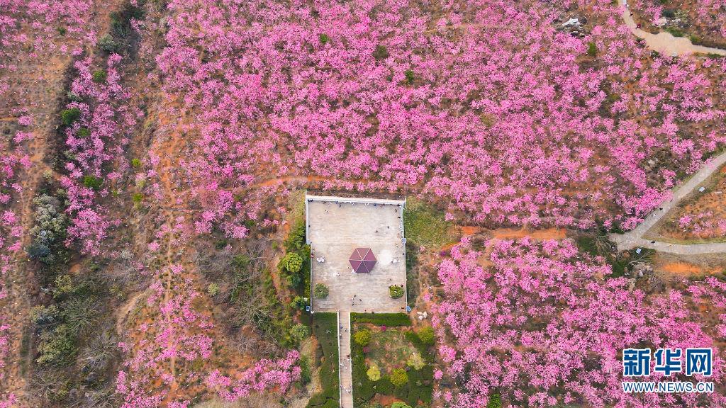 航拍东山森林公园樱花谷观景台(3月16日摄)。新华网发(郭康 摄)