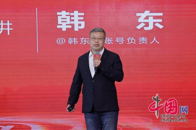 “@韩东言”账号负责人韩东作演讲。中国网 董宁 摄