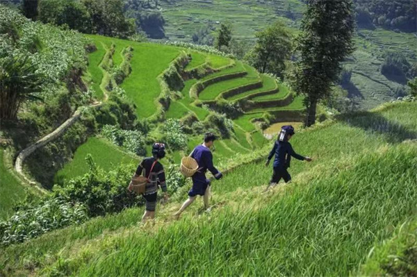 梯田中辛勤劳作的村民 图源:“云南省文化和旅游厅”微信公众号