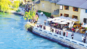 拥有600余年历史的海晏村,曾是滇池边普通的渔村,如今凭借绝佳观日落位置和改造后的特色业态,一跃成为年接待游客超200万人次的网红打卡地。“我们保留村落原始肌理,引入符合调性的新业态。”海晏社区相关负责人介绍,村集体通过“政府引领、企业运作”模式,引入咖啡馆、民宿、文创市集等百余家经营主体,让古老渔村焕发全新活力。