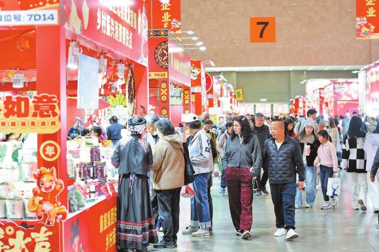 在昆明滇池国际会展中心,昆明新春购物博览会每天吸引大批市民游客逛年集、购年货,乐享云南特色新春好礼。