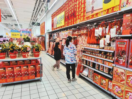 马年春节将至,年货消费热潮涌动,各大商超纷纷启动“年货节”,线上线下同步拉开年货市场大幕,消费市场年味儿越来越浓。