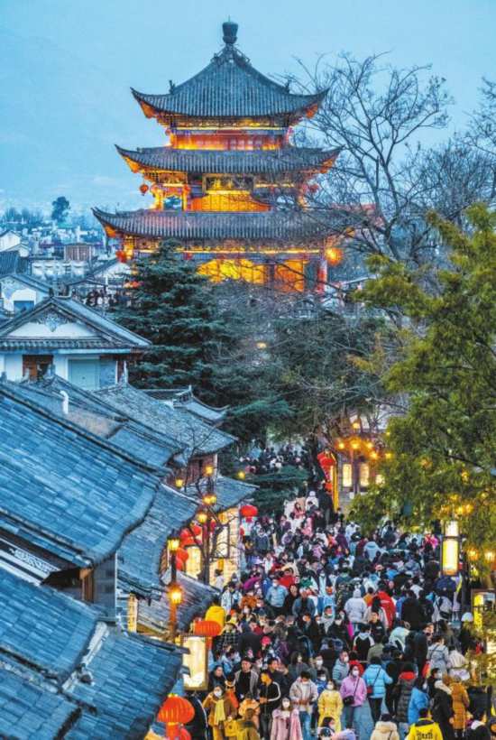 昆明市春节假期接待游客1779.67万人次。昆明巧妙重构玩法,以城市漫游为主线,将老街片区、南屏商圈等城市地标变为热门打卡地,通过“文化体验+假日烟火”双引擎驱动,有效点燃假日消费热情。大理白族自治州的“县域游”成为新宠,游客的脚步不再局限于苍山洱海,而是深入鹤庆县新华村感受银器锻制技艺,到云龙县聆听白族乡音,赴剑川县品味楹联文化,在洱源县体验温泉康养。县域资源的深度开发,有效分流并拓展了游客的体验空间。丽江市以高复游率证明了其文化黏性。数据显示,近八成游客为二次以上重游,其中23.53%的游客更是四次以上重访。摩梭年俗、纳西民歌会等百余场文化活动轮番上演,文化成为留住游客的关键。