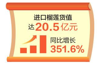前2个月云南口岸进口榴莲货值居全国首位