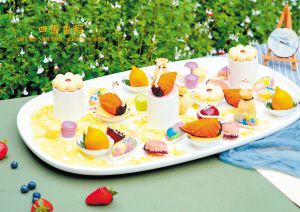 以黄瓜、诺邓火腿、豆干、树花精心摆盘,描绘出滇池北岸的长虫山走势——此为“北走蜿蜒”;在小船形状的脆壳里放入面包片,依次放入蓝莓酱和现片的烤鸭,淋上黑松露酱,烤鸭金黄酥脆的外皮宛如渔民夜晚捕鱼时点起的灯火——此为“半江渔火”……这些大观楼长联的意境,如今在云南餐饮人的巧思下“跃”上餐桌,化为色香味俱全的大观楼长联宴。