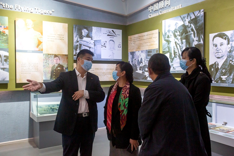 李京文副局长(左一)在云南省对台交流基地昆明飞虎队纪念馆调研
