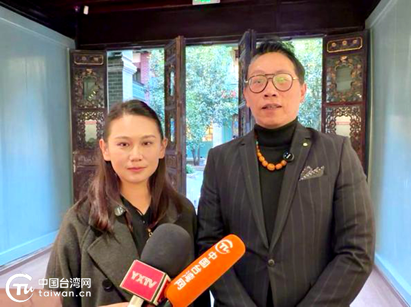 在地台商许振文夫妻活动结束后接受记者采访(中国台湾网记者 叶春禄 摄)