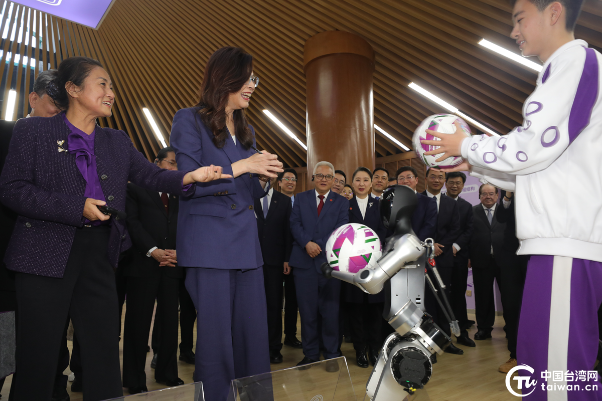 中国台湾网北京4月10日讯(记者 孙路路)“我想把它带回台湾!”中国国民党主席郑丽文在清华大学附属中学参访时,现场观看了一场别开生面的学生与机器人“足球赛”。赛后,机器人向她送上纪念足球,郑丽文欣喜互动,为这场科技与青春碰撞的交流留下生动一幕。