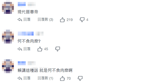 许多网友表示,“这句话就是韩国瑜说得比较贴切,莫忘台湾人没自己房子住的人太穷苦了”“宫廷内怎知世上苦人多”“人民生活痛苦指数你可知道!有钱有闲?薪水追不上物价”。