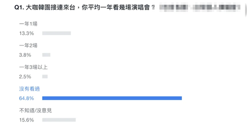 有台湾媒体进行网络投票调查台湾民众看演唱会的频率,参与投票的3.18万人之中,有64.8%表示没看过。还有粉丝被媒体询问是否因为“有钱又有闲”来看演唱会时表示,“也不是欸”,纯粹是为了娱乐。