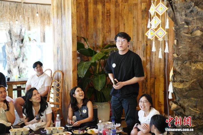 4月12日,参加澜湄之约青春行——泰国华裔青年企业家西双版纳交流营的泰国嘉宾,走进云南省西双版纳州景洪市,与当地青年企业家座谈交流,共叙友谊话发展。图为泰国华裔青年企业家发言。中新社记者 刘冉阳 摄