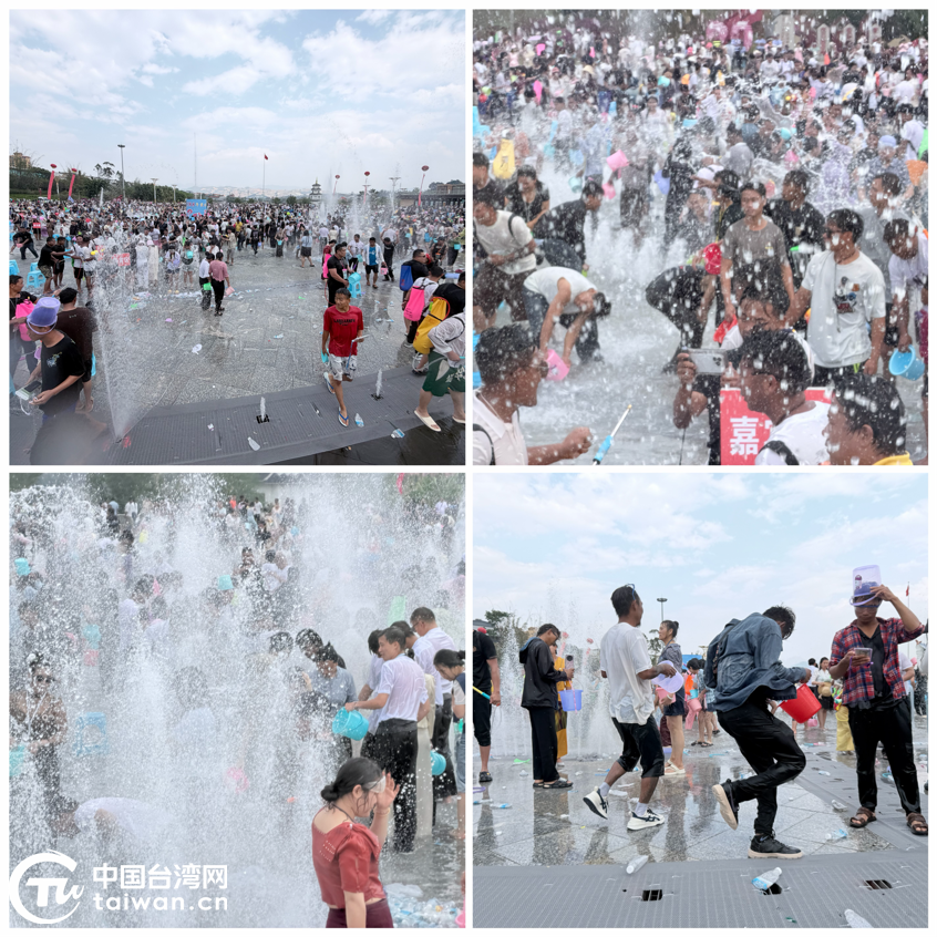 台湾同胞融入到水花飞溅的欢乐气氛中。(中国台湾网记者 叶春禄 摄)